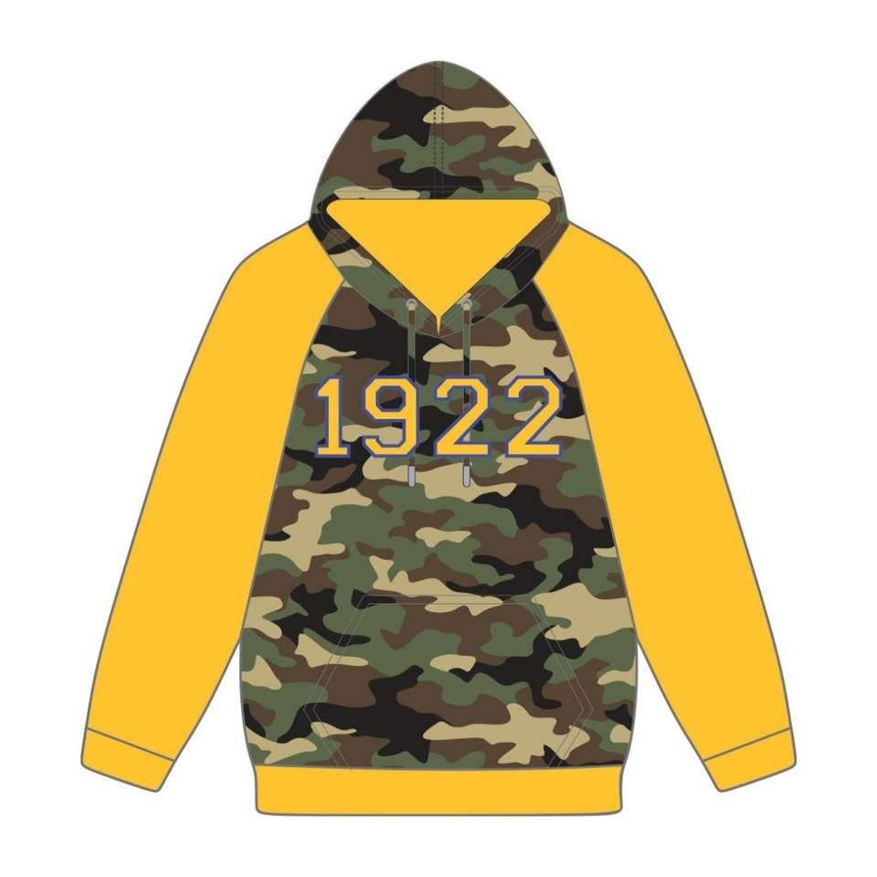 Sigma Rho Camo เสื้อฮู้ดแขนแร็กแลนสีทองแบบสวมศีรษะ sgrho sorority Divine hbcu 1922ปีที่ก่อตั้ง