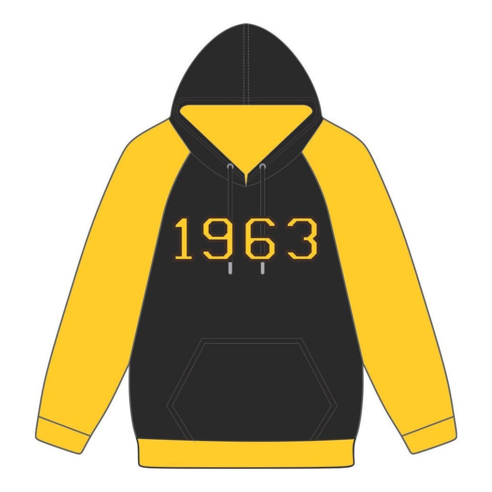 ปีก่อตั้ง 1963 ไอโอต้า ฟิ ทีตา เสื้อฮู้ดแขนยาวสีดำขอบทอง เสื้อผ้าสำหรับสมาคมพี่น้องชาวกรีก ดีไวน์ ไนน์ HBCU