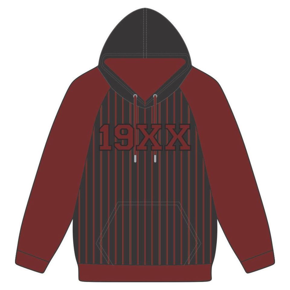 เสื้อฮู้ดสีดำ KAP รุ่น Founding Year แขนเสื้อแบบแร็กแลน สีมารูน ลายทาง ผลิตจากผ้าฝ้ายผสม สำหรับเครื่องแต่งกายสมาคมพี่น้องชาวกรีก Divine Nine HBCU
