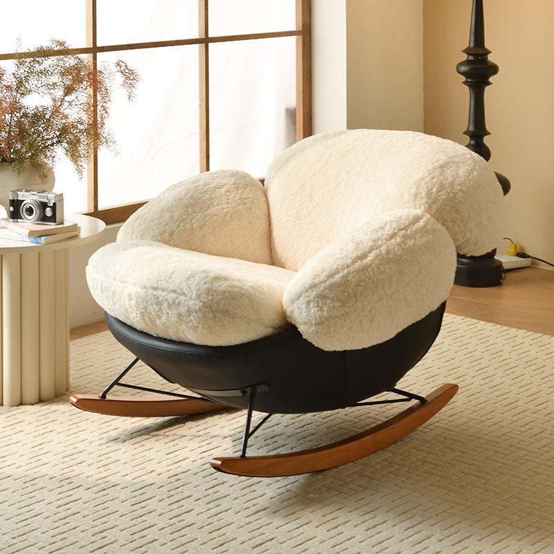 เก้าอี้โยกทรงใบโคลเวอร์สี่แฉก พรีเมียม บุด้วยขนแกะแท้ โฟมคุณภาพสูง สำหรับห้องนั่งเล่น ดีไซน์ปรับเอนได้
