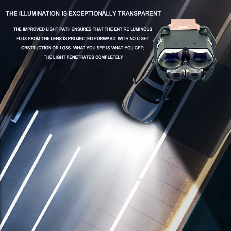 ไฟหน้าแบบสี่เลนส์ LED ทรงสี่เหลี่ยม ลำแสงคู่ 6000K 8000 ลูเมน สว่างกว่าเดิม 500% ทนทานต่อการสึกหรอ