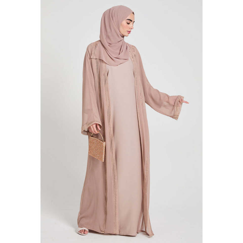 เดรสผ้าชีฟองอาบายาและซับในเปิดด้านนอกผ้า