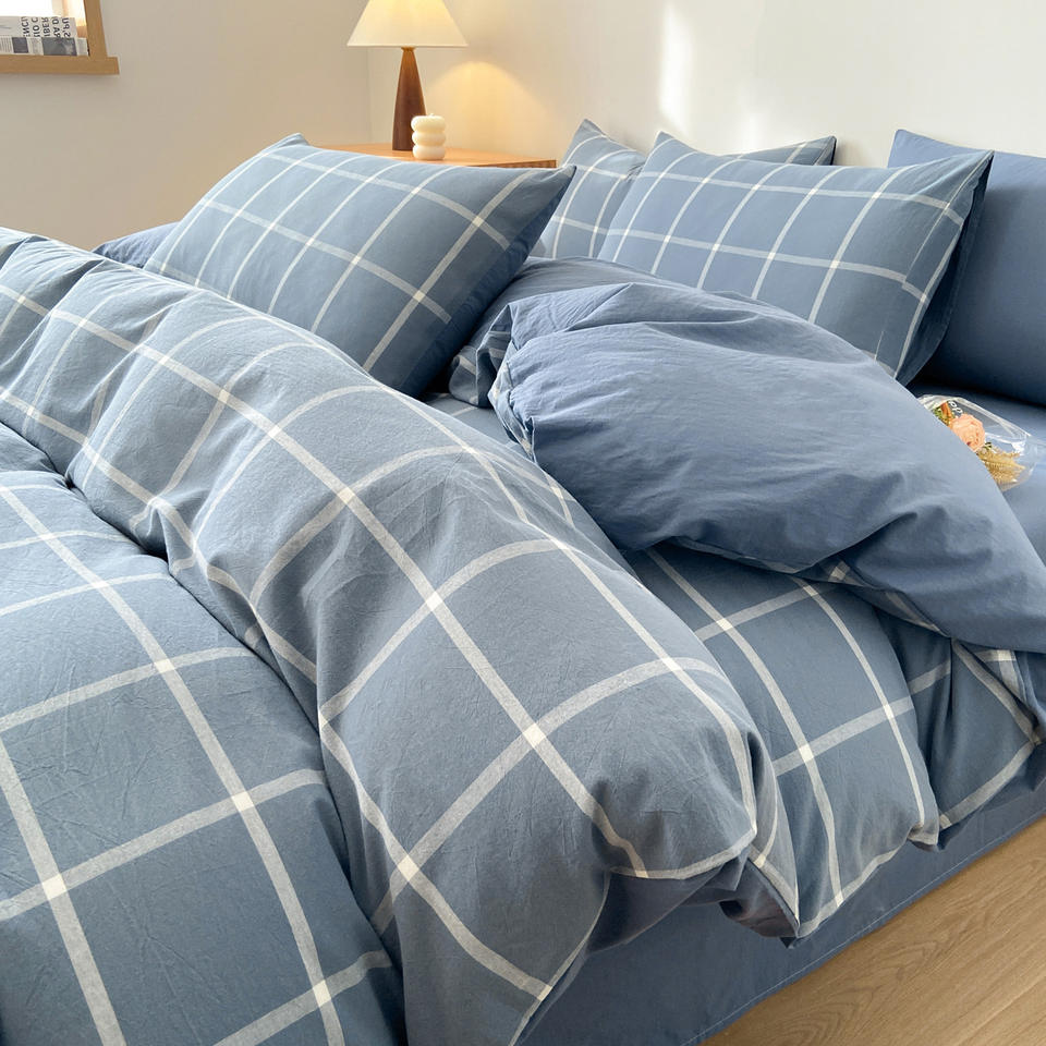 ชุดปลอกผ้านวมผ้าฝ้ายลายเรขาคณิต4ชิ้น, ชุดผ้าปูที่นอนม่านปรับแสงผ้าม่านสไตล์โมเดิร์นชุดซักได้แบบ all-in-One