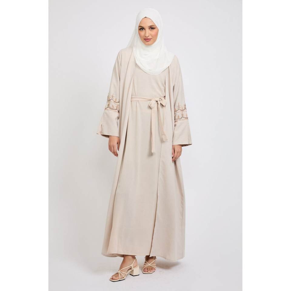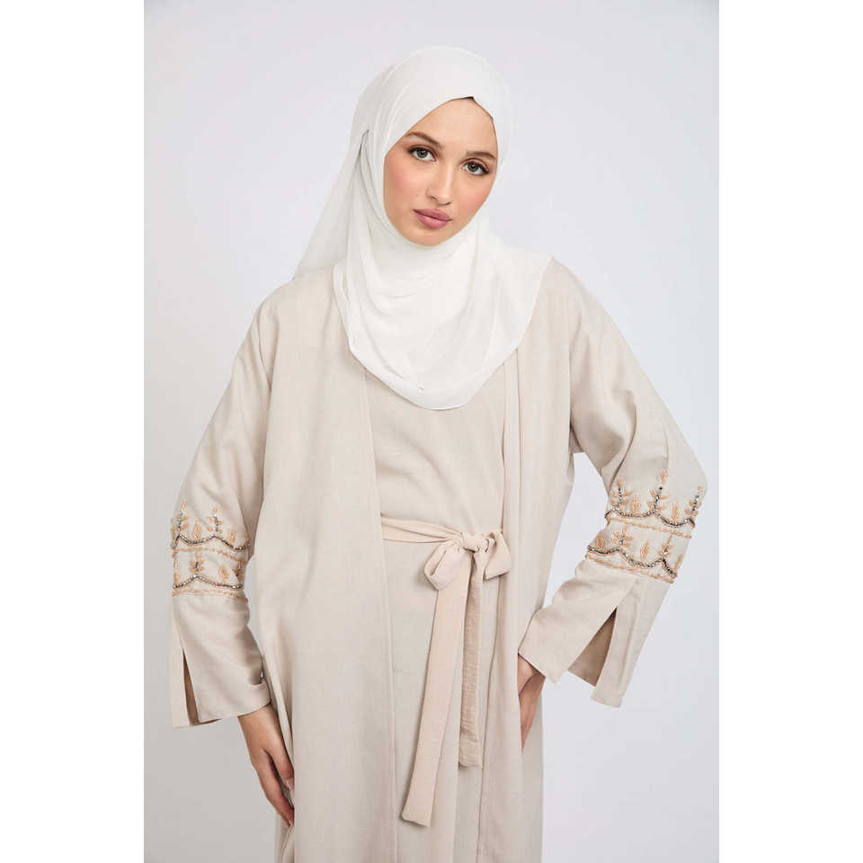 ชุดอาบายาแบบเปิดติดข้อมือเสื้อสไตล์เรียบง่าย4ชิ้น