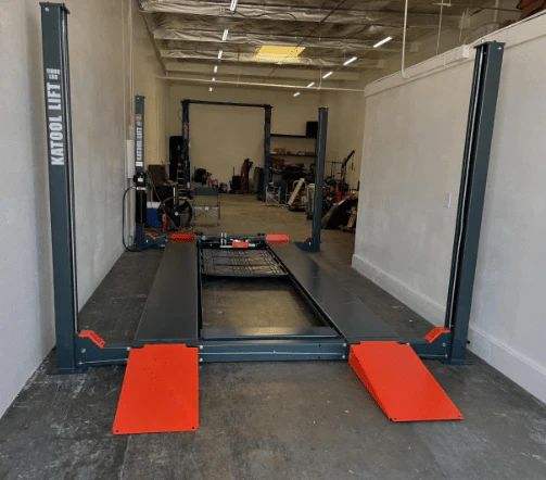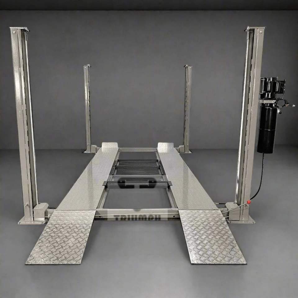 ลิฟท์กรรไกรแบบ 4 เสา สำหรับตั้งศูนย์ล้อ ระบบไฮดรอลิกไฟฟ้า รับน้ำหนัก 6 ตัน ยกได้ 25-72.8 นิ้ว (11000 ปอนด์) อายุการใช้งาน 10 ปี