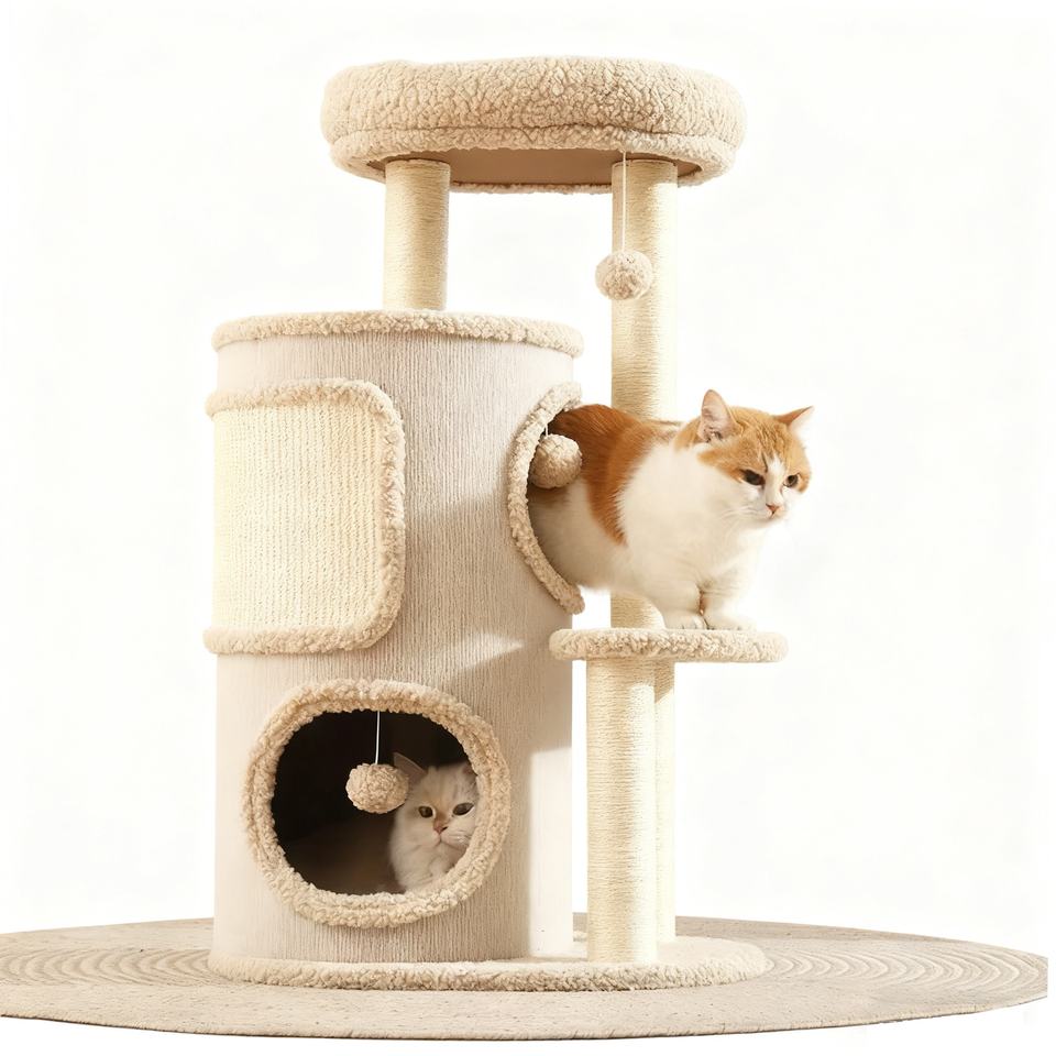 ต้นไม้แมวหลายระดับพร้อมเตียงแมวในตัว