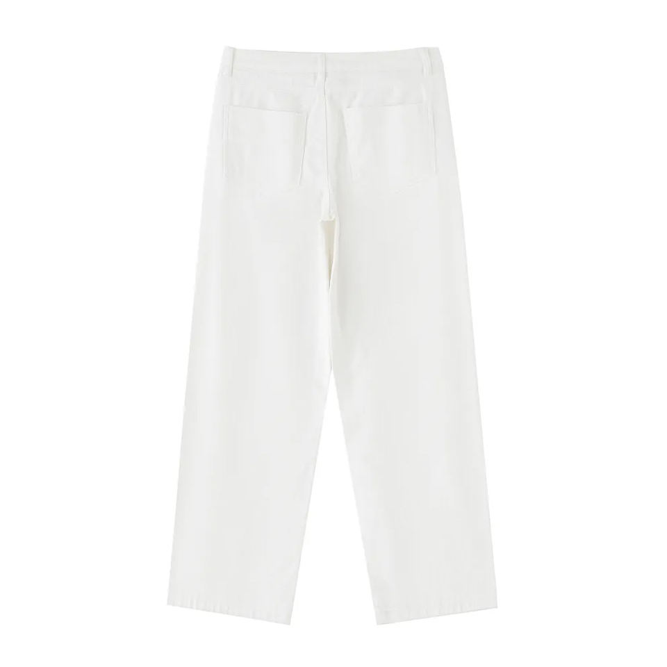 กางเกงยีนส์ทรงตรงเอวสูงปานกลางแบบเกาหลีรุ่นใหม่จากโฟร์ซีซั่นส์ ดีไซน์เรียบง่าย ปรับเอวได้ เหมาะสำหรับใส่ทำงาน
