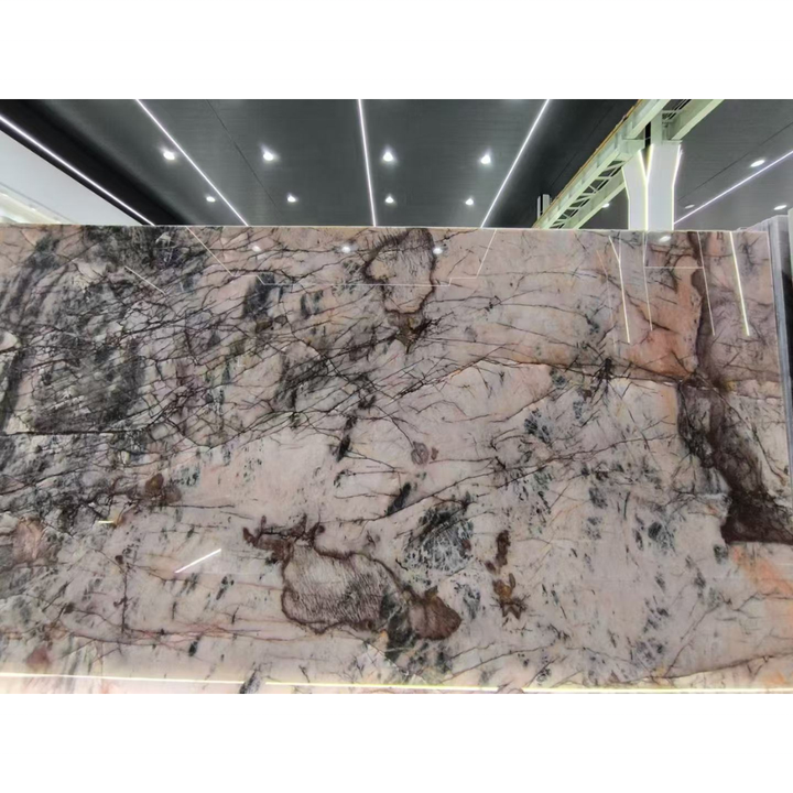 แผ่นหินอ่อนสีชมพูสำหรับตกแต่งผนังบันไดบ้านวิลล่าแบบกันน้ำกระเด็นและโต๊ะเครื่องแป้งสไตล์ฝรั่งเศสสำหรับตกแต่งผนังบันได
