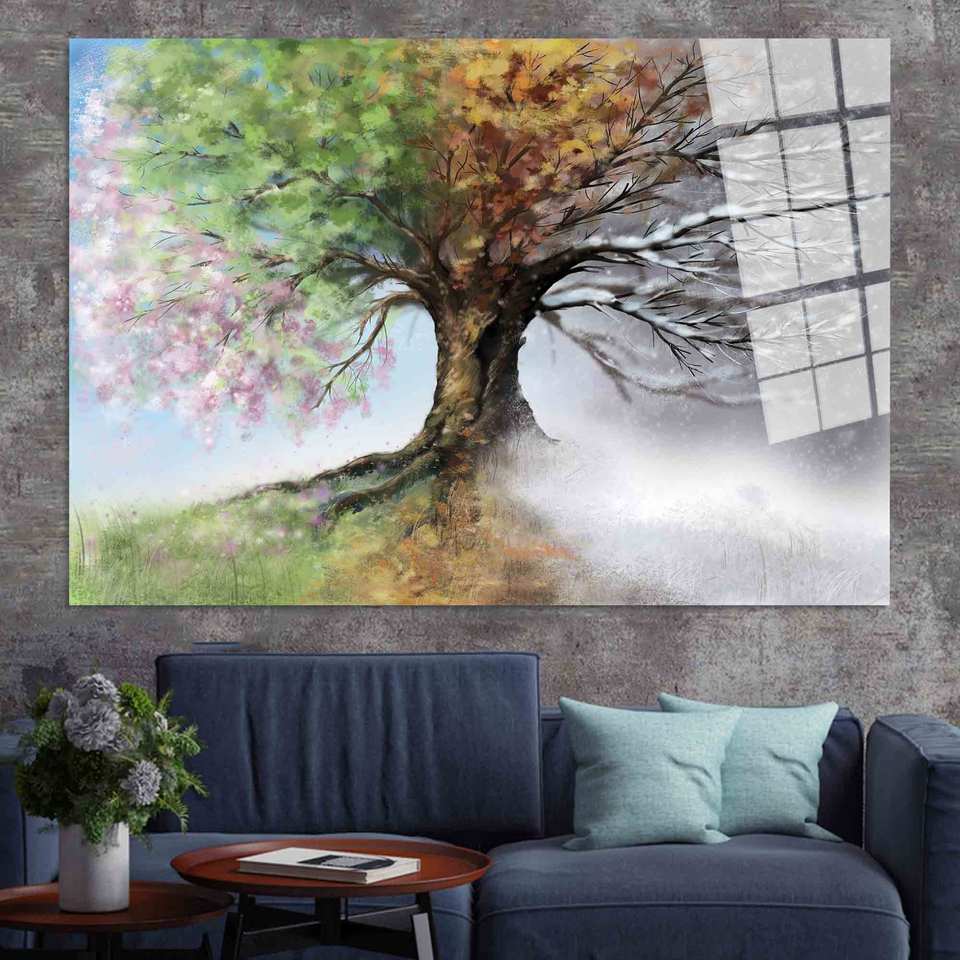 ภาพพิมพ์บนผ้าใบลายต้นไม้โฟร์ซีซั่นส์: งานศิลปะตกแต่งผนังสมัยใหม่, งานศิลปะกระจกเทมเปอร์