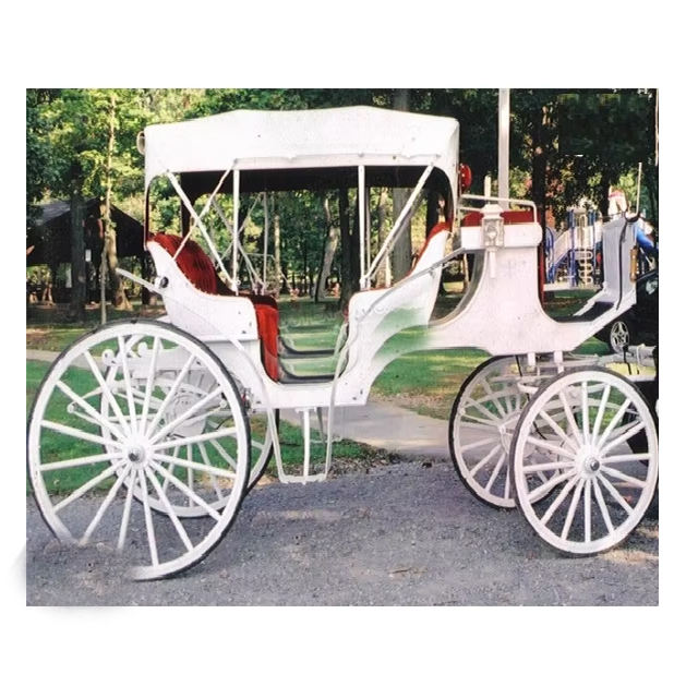 รถม้าสี่ที่นั่งลากรถม้าสีขาวสำหรับการท่องเที่ยวม้าที่มีคุณภาพสูงหรูหรา