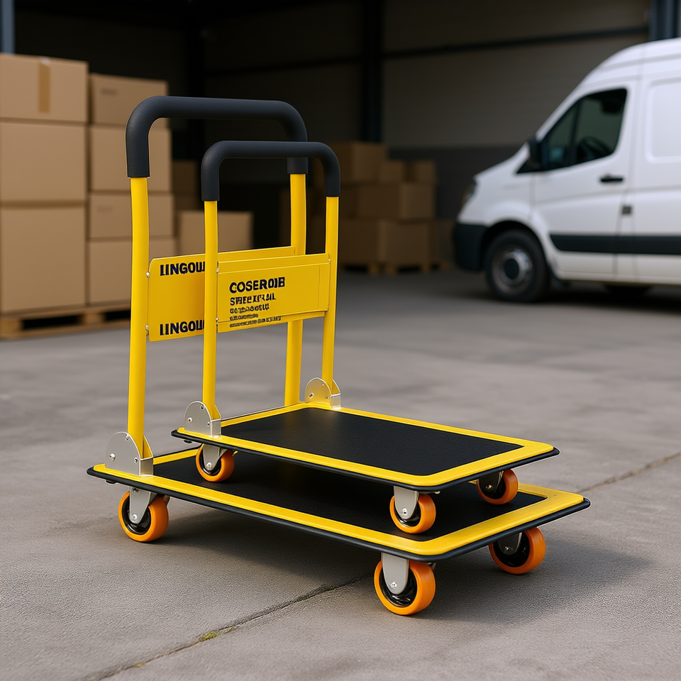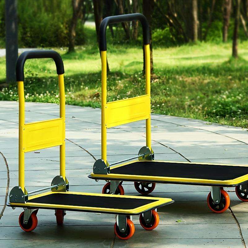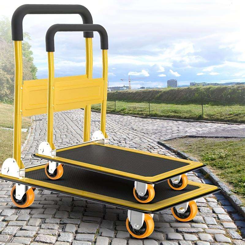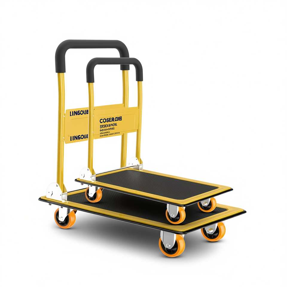 รถเข็นล้อเลื่อนเหล็กสี่ล้อ Lingoub แบบพับได้ เคลือบสีฝุ่น ล้อทำจากยางเงียบ รถเข็นช็อปปิ้งแบบพกพา