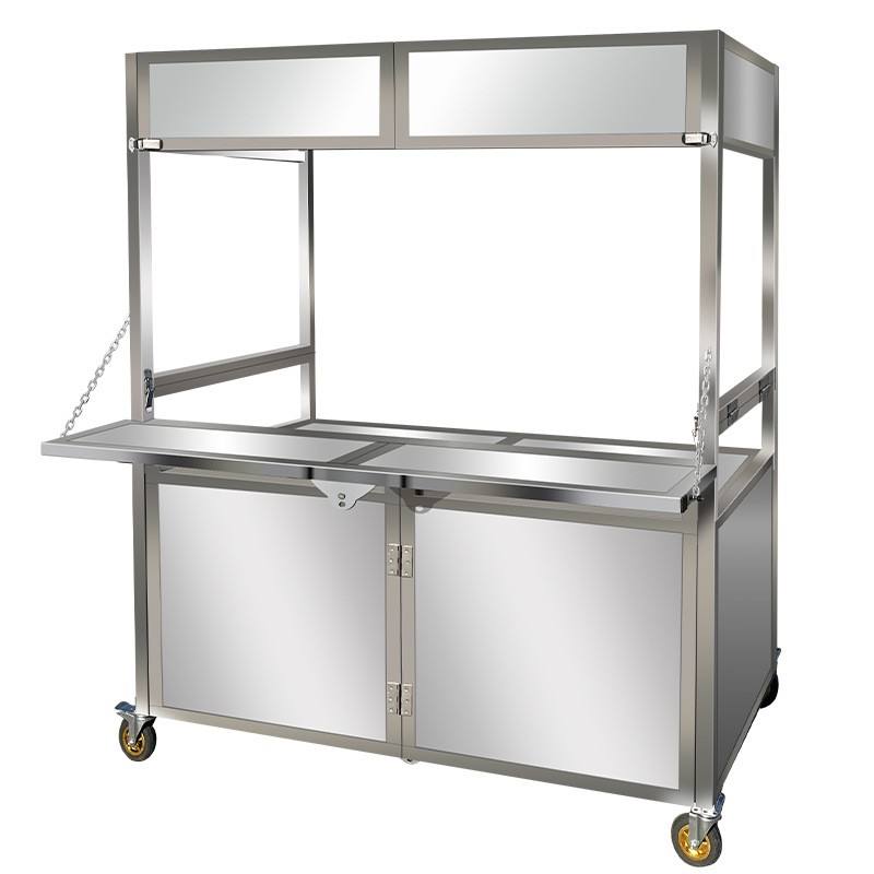 รถเข็นขายอาหารไฟฟ้าสี่ล้อพับได้ทำจากสแตนเลส รถสามล้อขายกาแฟ น้ำผลไม้ รถขายฮอทดอก