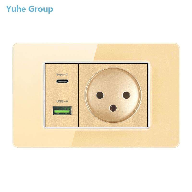 แผงกระจกนิรภัยสี่สี แผงสัมผัส มาตรฐานอิสราเอล ช่องเสียบ USB C ชาร์จเร็ว IP21 สวิตช์ไฟติดผนัง ปลั๊กไฟ ทีวีดาวเทียม