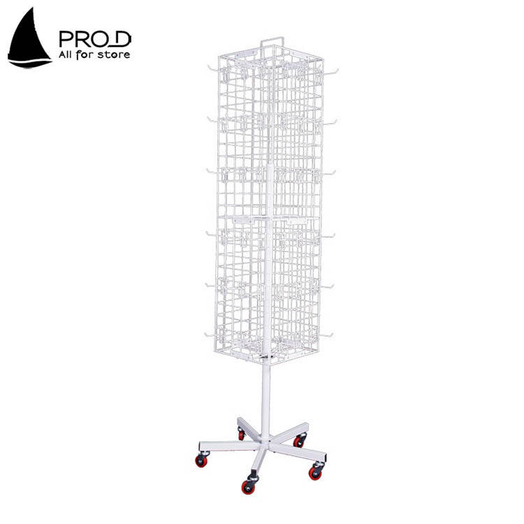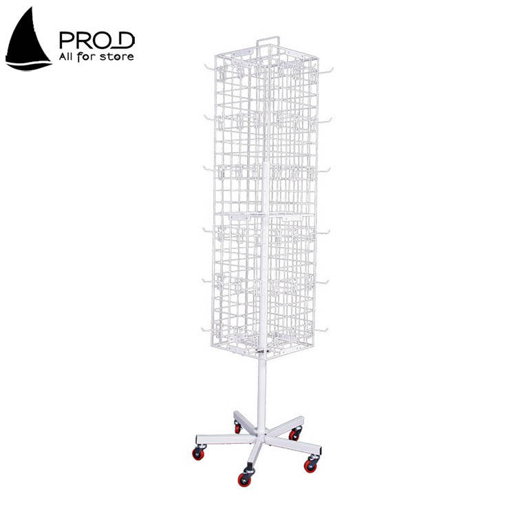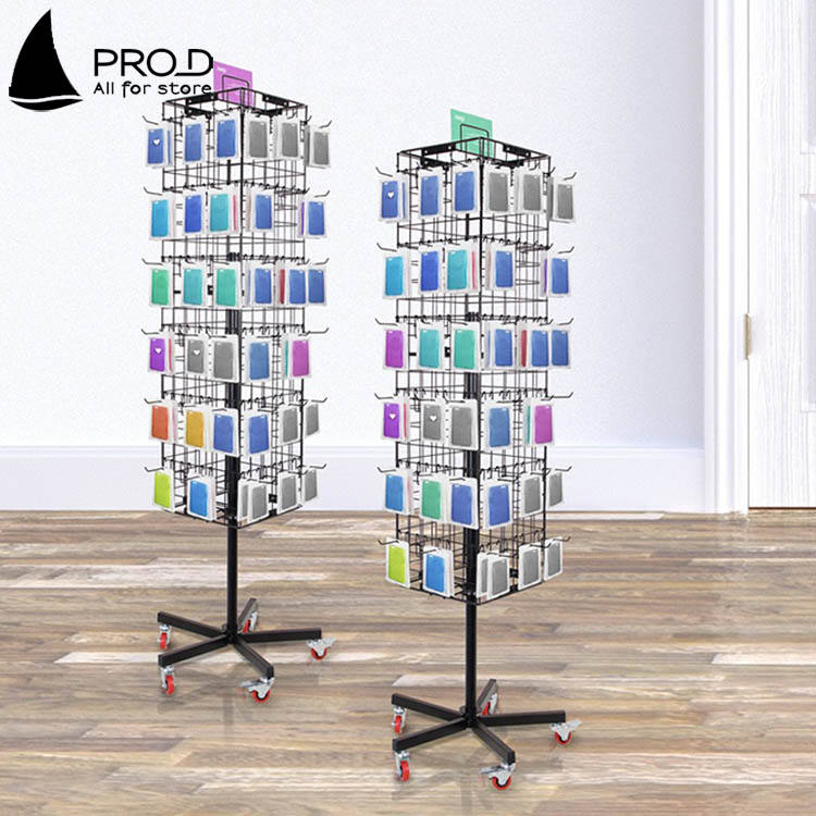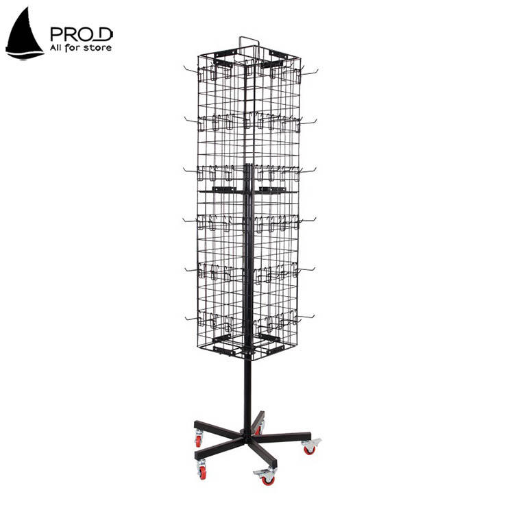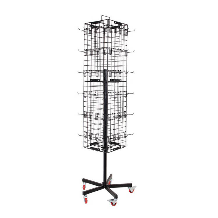 ชั้นวางพวงกุญแจแบบหมุนได้สี่ด้านทำจากโลหะสีดำสำหรับจัดแสดง