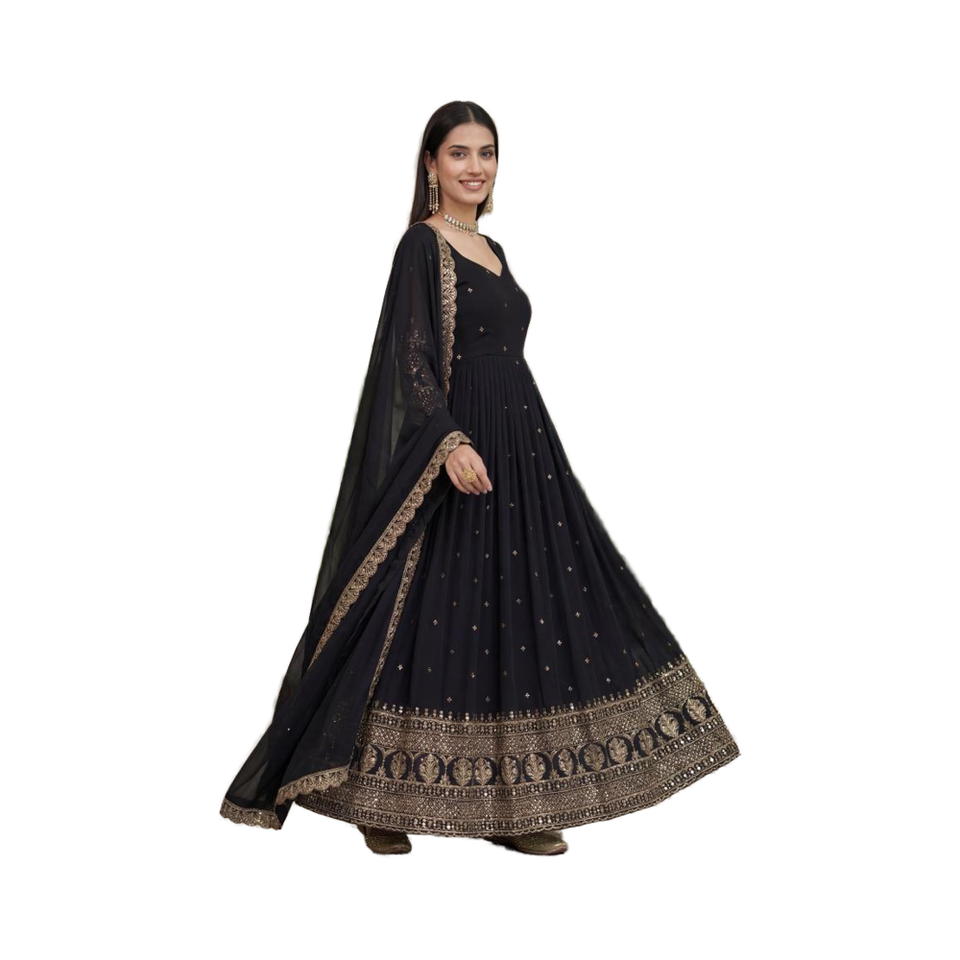 ชุดเดรสปักลายฟ็อกซ์จอร์เจตต์ วิชิตร่า แม็กซี่ สไตล์โมเดิร์นแบบปากีสถาน สำหรับงานปาร์ตี้ แฟชั่นแบบดั้งเดิม ประดับด้วยงานปักเลื่อมและลายปักดิ้นทอง สามารถใส่ได้สองด้าน