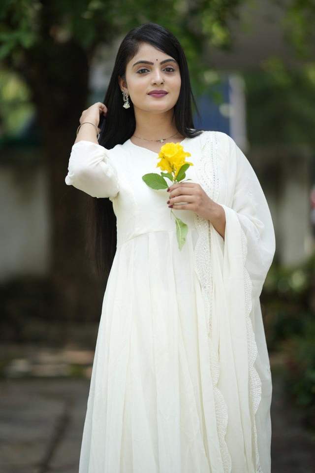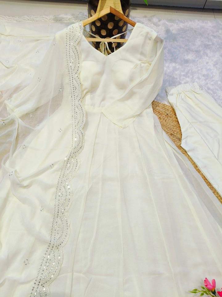ชุดเดรสยาวแขนยาวผ้าจอร์เจียต์สำหรับผู้หญิง ยี่ห้อ Fox พร้อมผ้าคลุมไหล่ปักลายและกระโปรงผ้าไมโครเครป ชุดเย็บสำเร็จ 3 ชิ้น ไซส์ M XXL