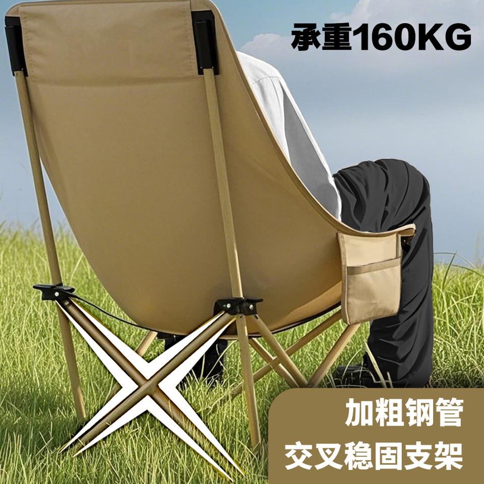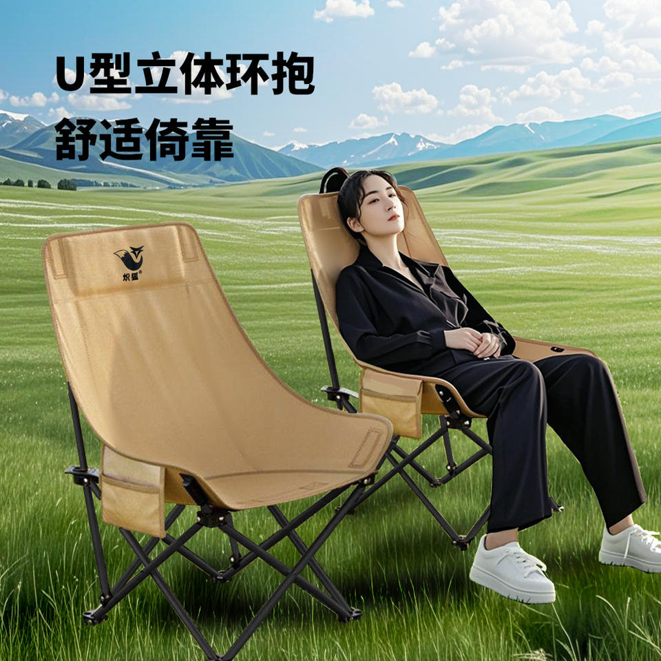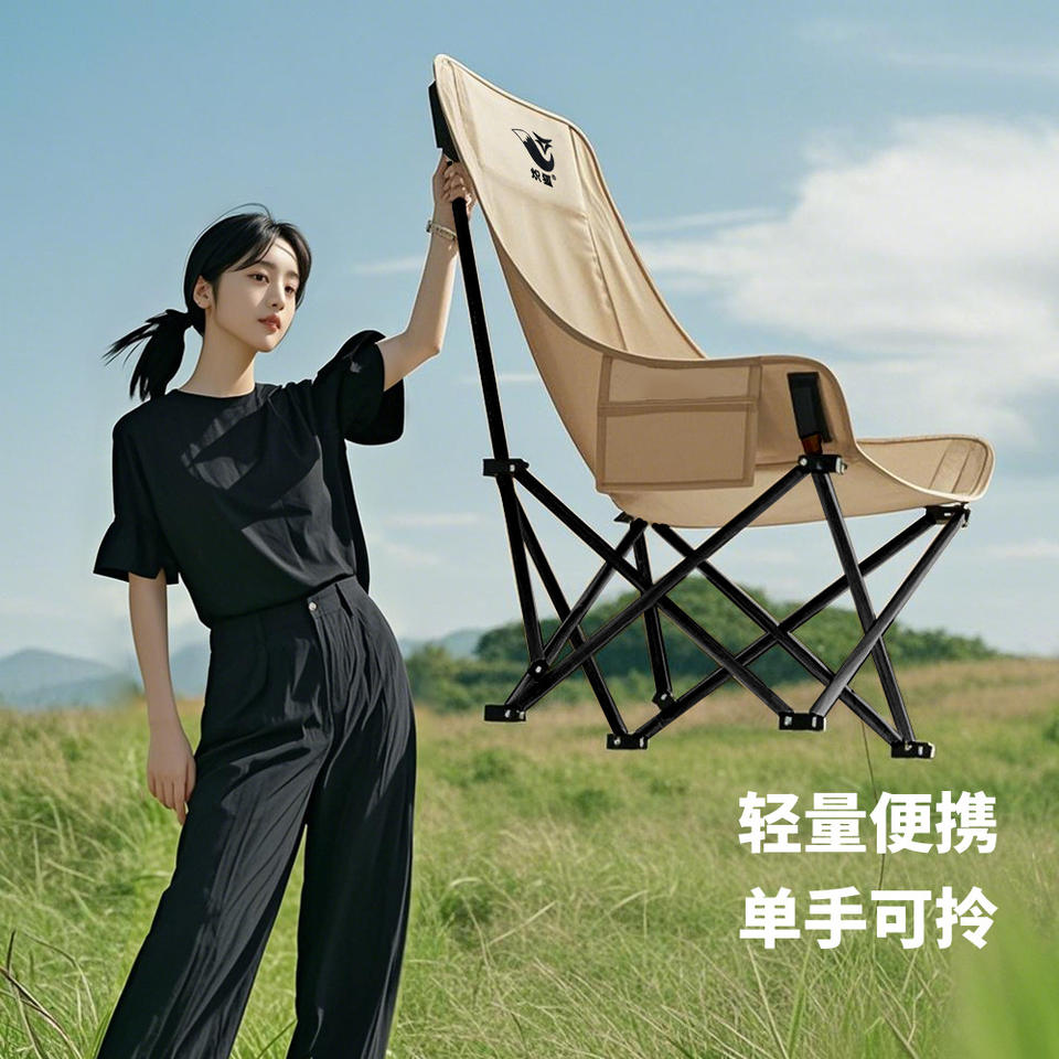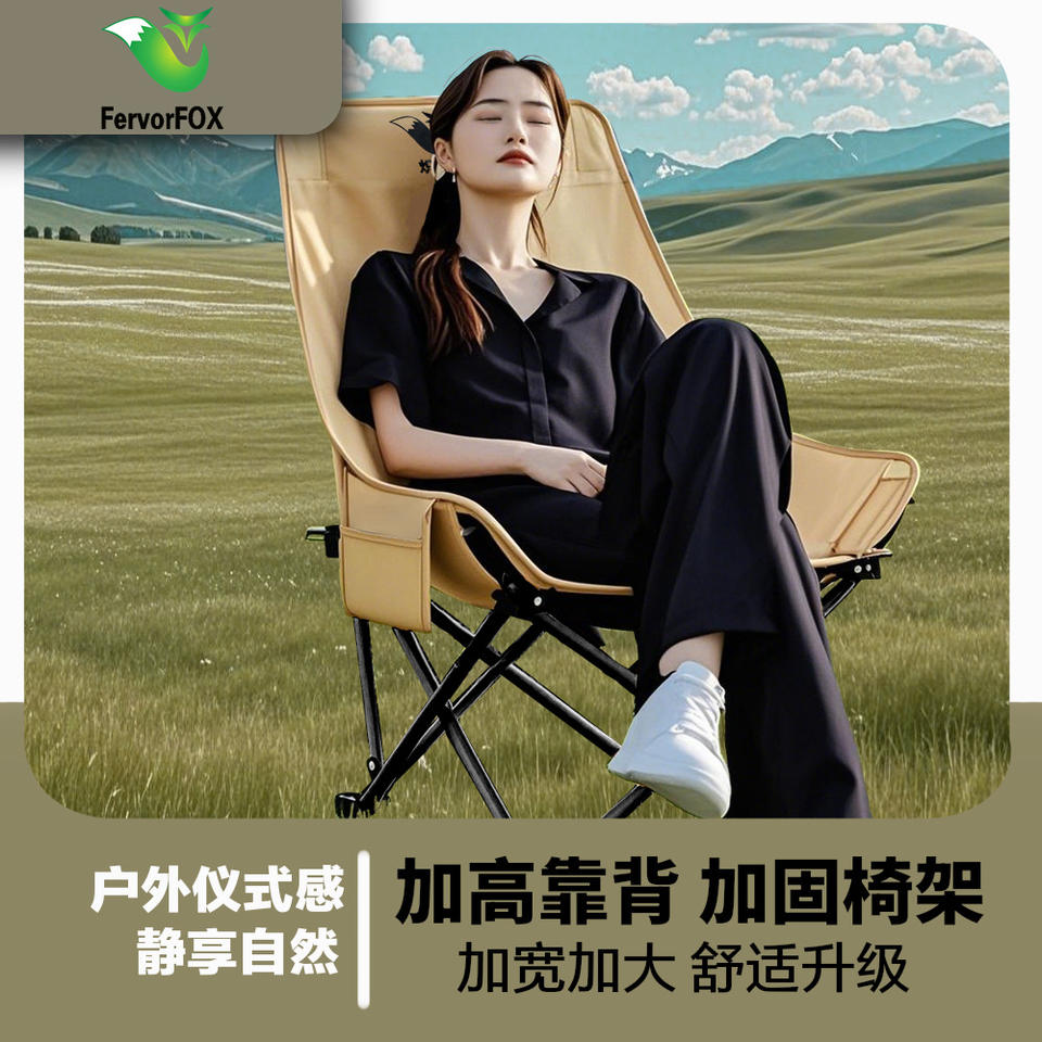 เก้าอี้พับสำหรับตั้งแคมป์กลางแจ้ง Fox สีกากี พนักพิงสูง ปรับระดับไม่ได้ รูปทรงวงรี สำหรับตกปลา พกพาสะดวก