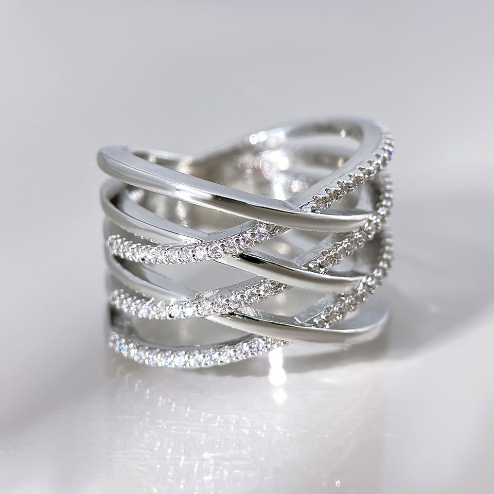 โรงงานผลิตแหวนเงินแท้ 925 สีชมพู กันน้ำ ป้องกันการแพ้ ลายเส้นตัดกัน ราคาขายส่งจาก Foxi