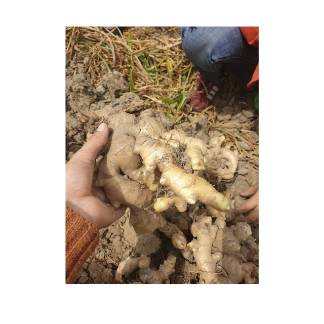 ขิงสดจากธรรมชาติที่มีกลิ่นหอมพร้อมเนื้อเส้นใยผิวนุ่มรสชาติเหมือนดินและความสม่ำเสมออย่างมากเหมาะสำหรับการปรุงรสสมุนไพรใช้