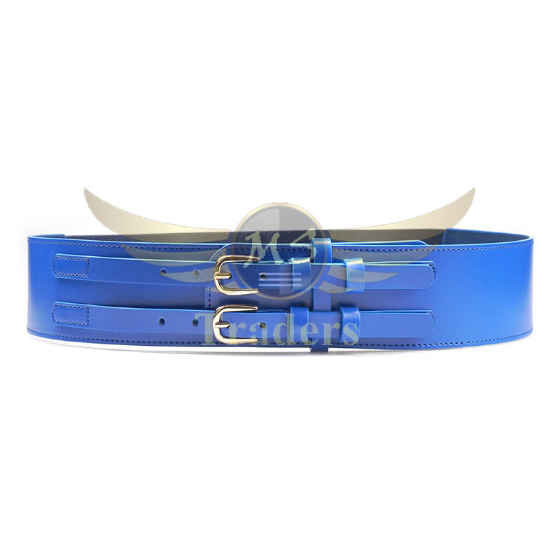 เข็มขัดหนังคาดเอวกรอบหัวเข็มขัดเข็มขัดผู้หญิงสีฟ้ากว้างทรงสี่เหลี่ยม