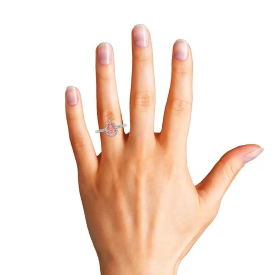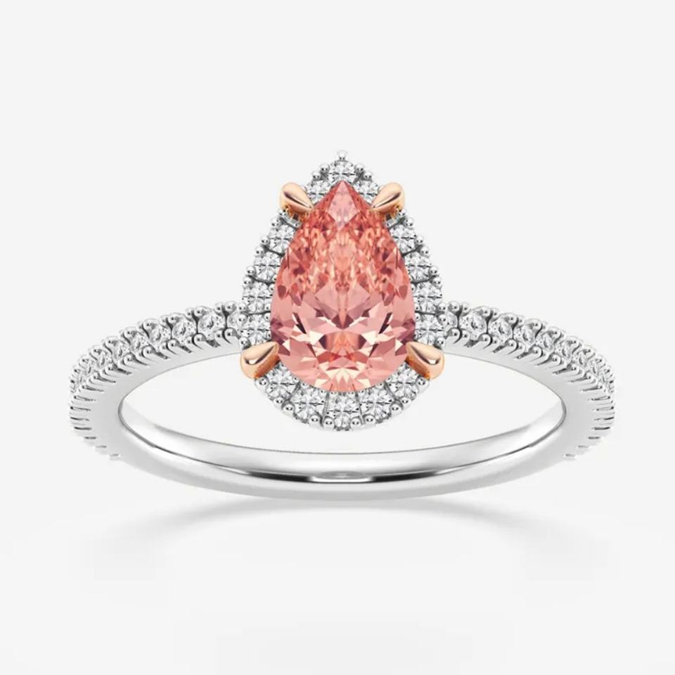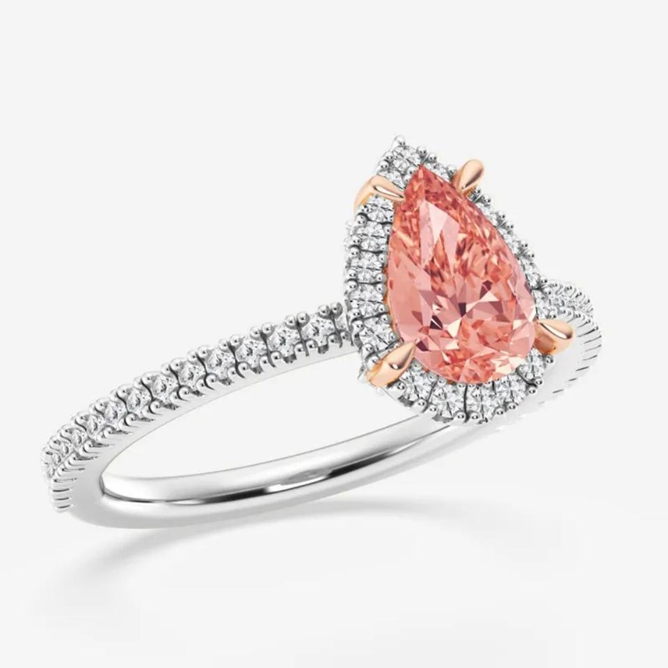 Frame Halo Engagement Ring Fancy Pink Lab Sapphire With Prong Set 1.5ct Pear Lab Grown Diamond Ring