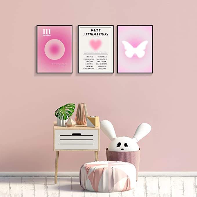 กรอบศิลปะการไล่ระดับสีตัวเลขนางฟ้าออร่าโปสเตอร์ที่สวยงาม3แผงการยืนยันทางจิตวิญญาณศิลปะบนผืนผ้าใบติดผนัง