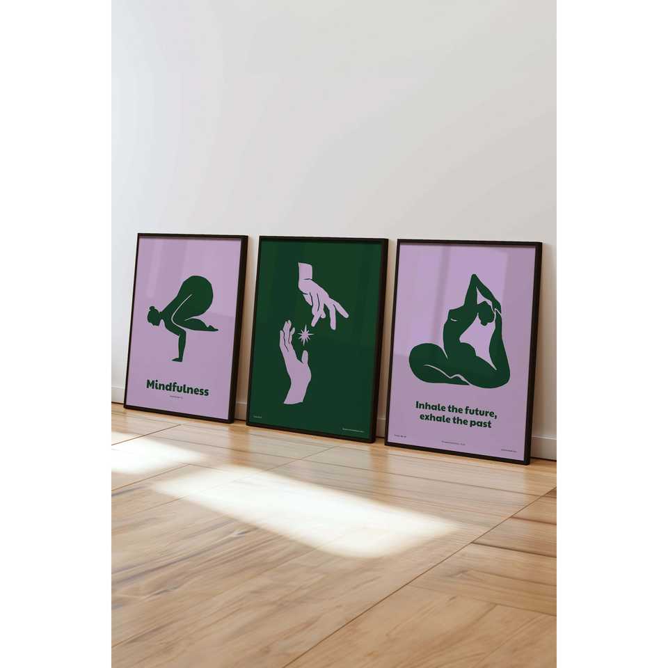 ชุดภาพวาดกรอบ3ชิ้นกรอบสีดำและชุดโปสเตอร์แนวโยคะภาพวาดติดผนัง