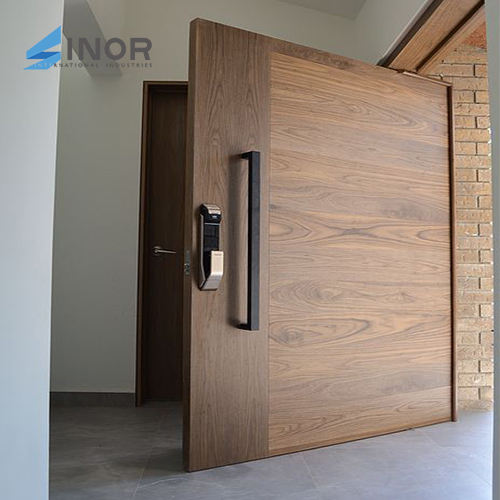 ประตูหมุนไม้แบบไร้ขอบที่ทันสมัยไร้กรอบพร้อมที่ยึดแบบหมุนซ่อนกันน้ำออกแบบมาสำหรับภายนอกและห้องนั่งเล่นผนังไร้รอยต่อ