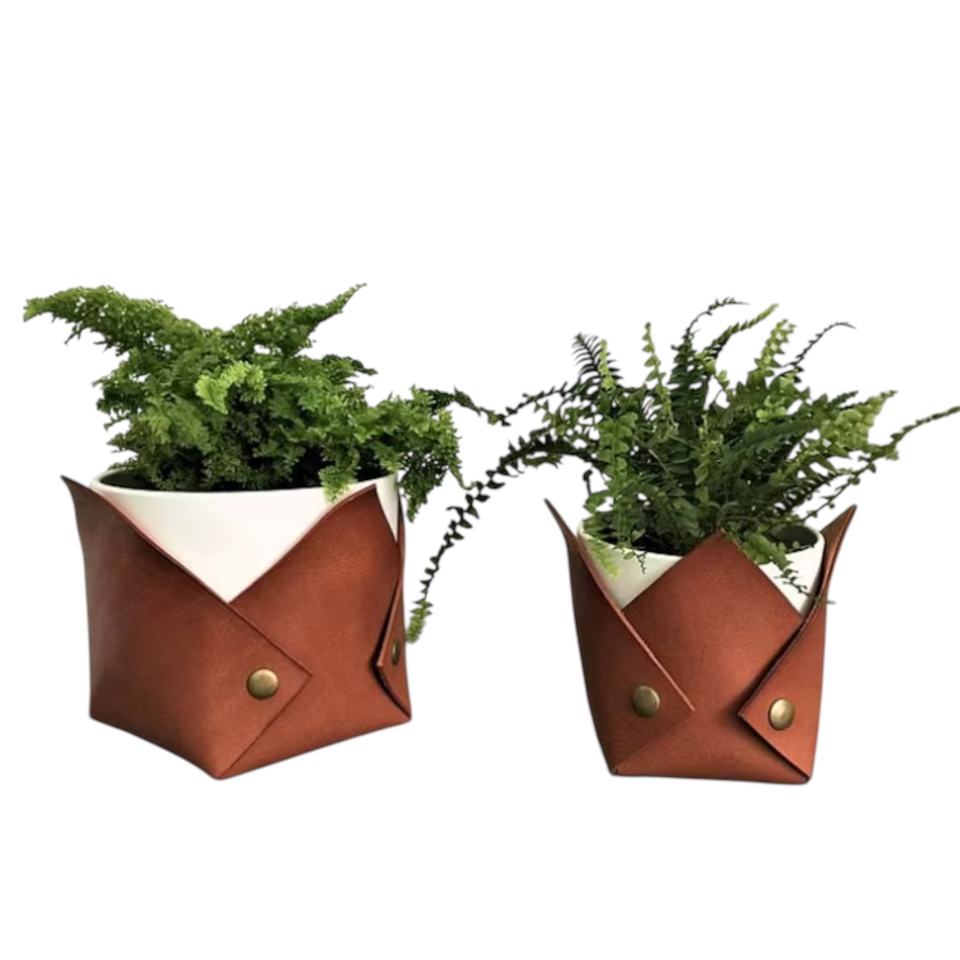 ที่ใส่กระถางต้นไม้ทำจากหนังทนทานดีไซน์แบบฝรั่งเศสที่คลุมหม้อแบบแขวนสำหรับสวนในร่มและห้องนั่งเล่น