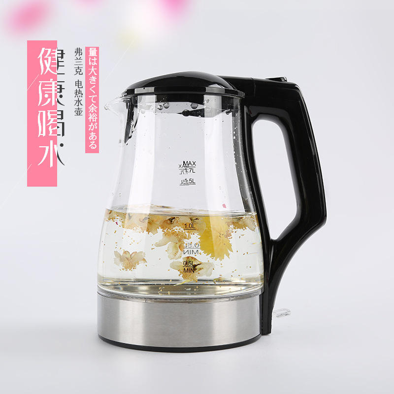 กาต้มน้ำไฟฟ้าแฟรงค์ 1.5 ลิตร แก้วโบโรซิลิเกตคุณภาพสูง ปิดอัตโนมัติ ป้องกันการต้มจนแห้ง กาต้มน้ำสำหรับใช้ในครัวเรือน