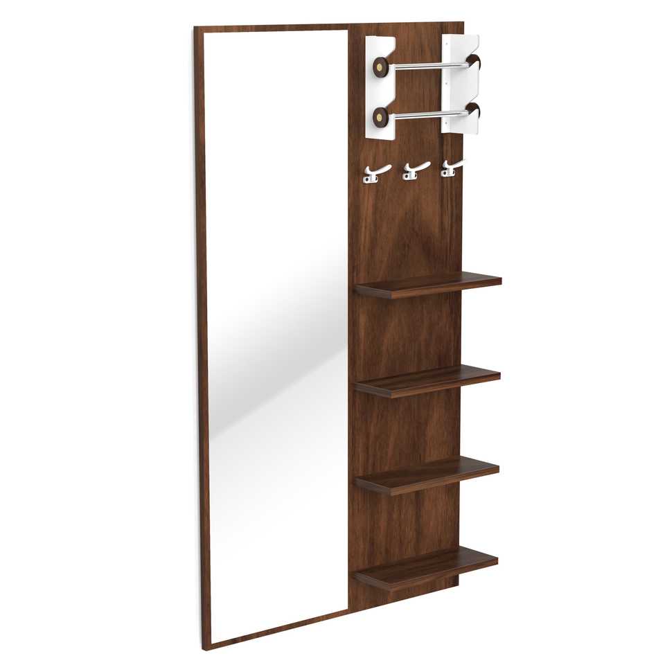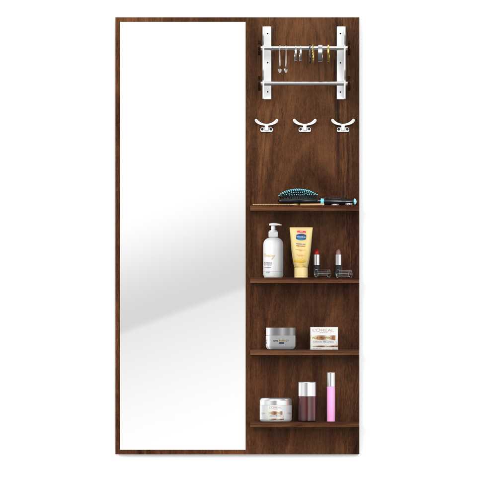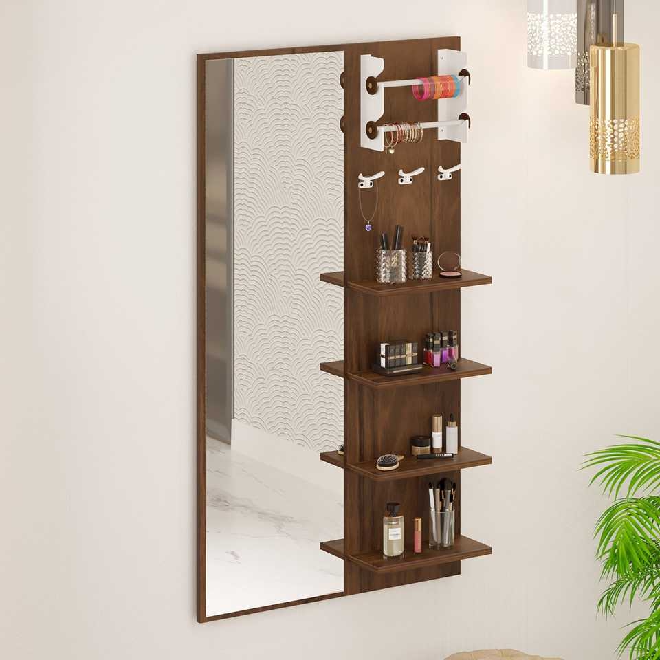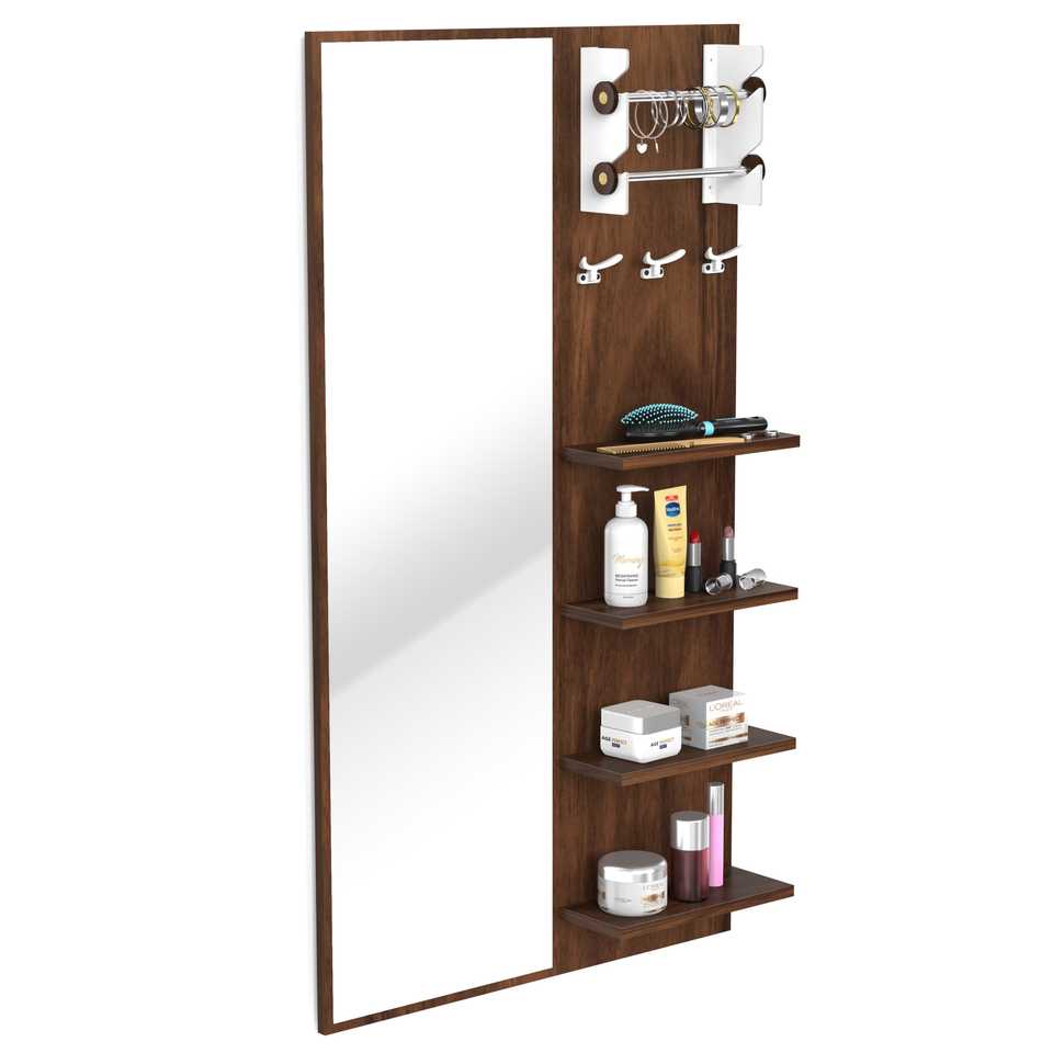 โต๊ะเครื่องแป้งติดผนังพร้อมกระจกแต่งหน้า ชั้นวางของ และที่แขวนเครื่องประดับ ยี่ห้อ Freddie ผลิตจากไม้เอ็นจิเนียร์วูด