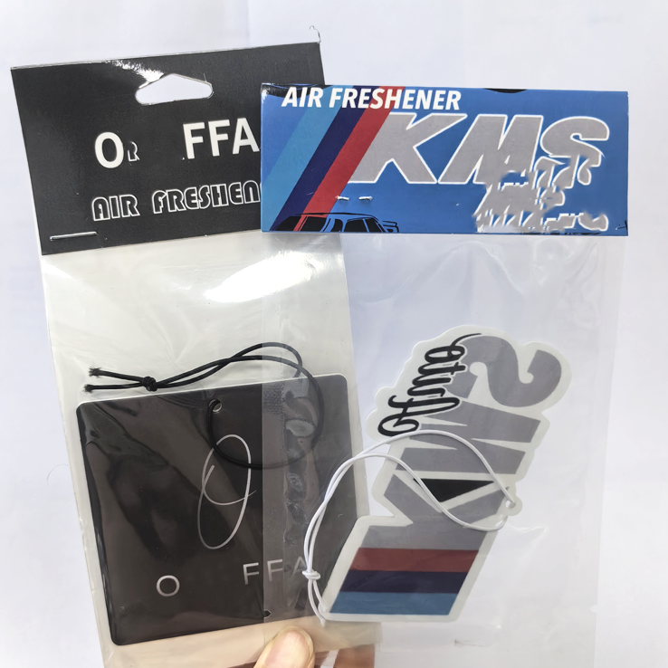 CMYK น้ำหอมปรับอากาศสองด้านพิมพ์ลายยาวนานกระดาษโลโก้รถยนต์พร้อมบรรจุภัณฑ์แบบกำหนดเอง