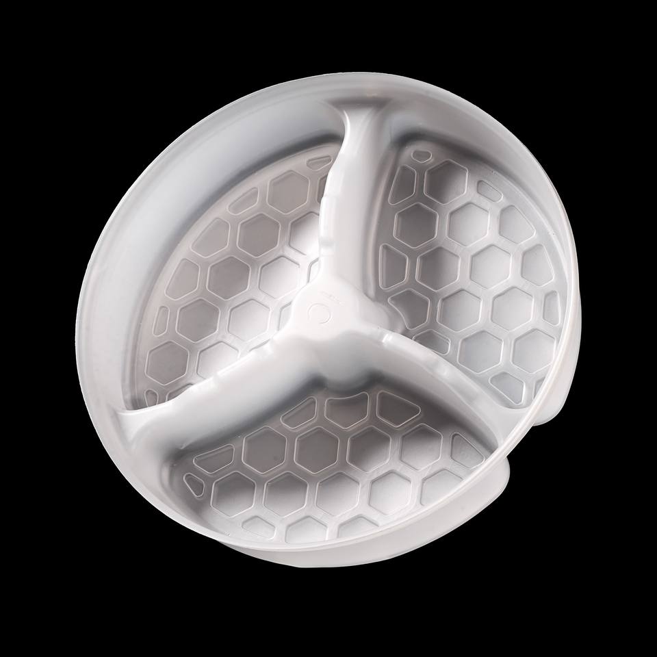 ถาดพลาสติก PP ทรงกลมแบบแบ่งช่อง 3 ช่อง สำหรับใส่แก้วกระดาษ ชามกระดาษ ขายส่ง มีจำหน่ายฟรี รับผลิตแบบ OEM/ODM