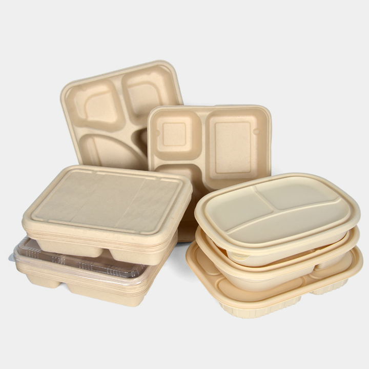 กล่องข้าวทำจากเยื่อชานอ้อยย่อยสลายได้กล่องอาหารกลางวันแบบฝาพับเก็บได้กล่องใส่อาหารกล่องชานอ้อย