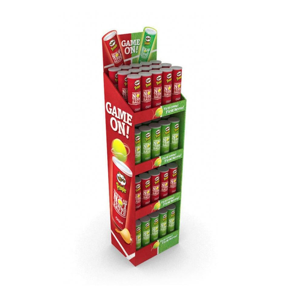 ชั้นวางสินค้าแบบตั้งพื้นทำจากกระดาษลูกฟูกแบบกำหนดเองได้ฟรี สำหรับขนมขบเคี้ยว ช็อกโกแลต และสินค้าอื่นๆ
