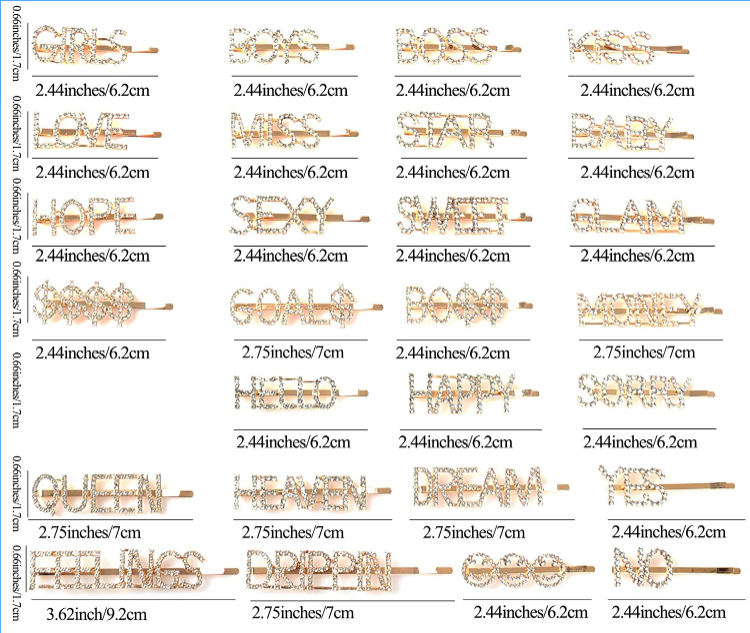 กิ๊บติดผมโลหะผสมทองคำแบบกำหนดเองฟรี ประดับด้วยเพชรระยิบระยับ กิ๊บติดผมรูปตัวอักษร กิ๊บติดผมเพชรสำหรับเด็กผู้หญิง