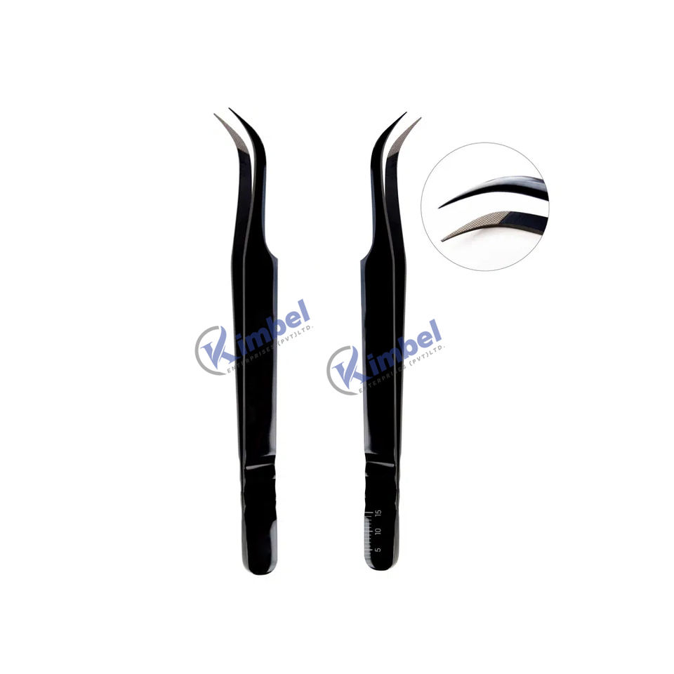 แหนบต่อขนตาปลายโค้ง วัสดุไฟเบอร์ สแตนเลสสตีล พลาสมาสีดำ 12 ซม. ทนทานและแม่นยำ สำหรับการสั่งซื้อจำนวนมาก