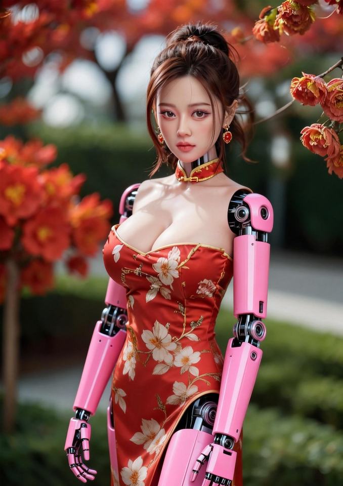 จัดส่งฟรี หุ่นยนต์ประดิษฐ์อัจฉริยะตกแต่งชุดกี่เพ้าสไตล์ตะวันออกสำหรับผู้หญิง รูปหน้าและขนาดใบหน้าหลากหลายรูปแบบ