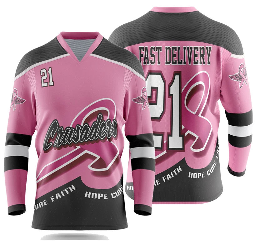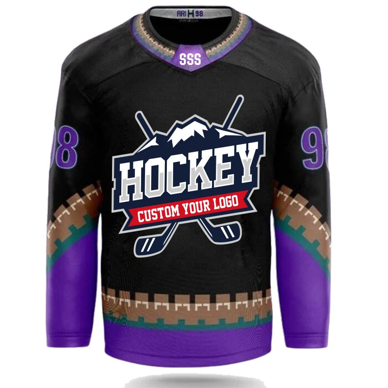 เสื้อเจอร์ซีย์พิมพ์ลายสำหรับผู้ใหญ่เสื้อฮอกกี้น้ำแข็งทำจากโพลีเอสเตอร์100% งานออกแบบได้ตามต้องการ