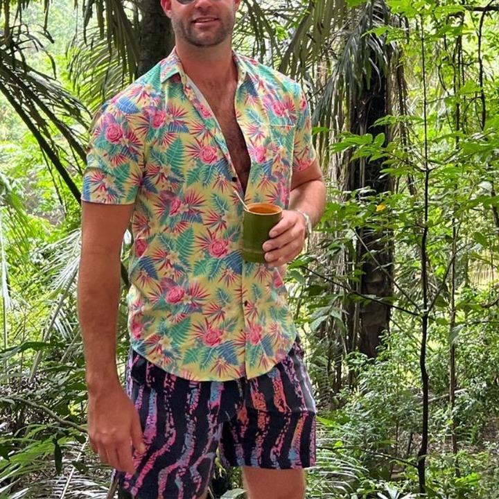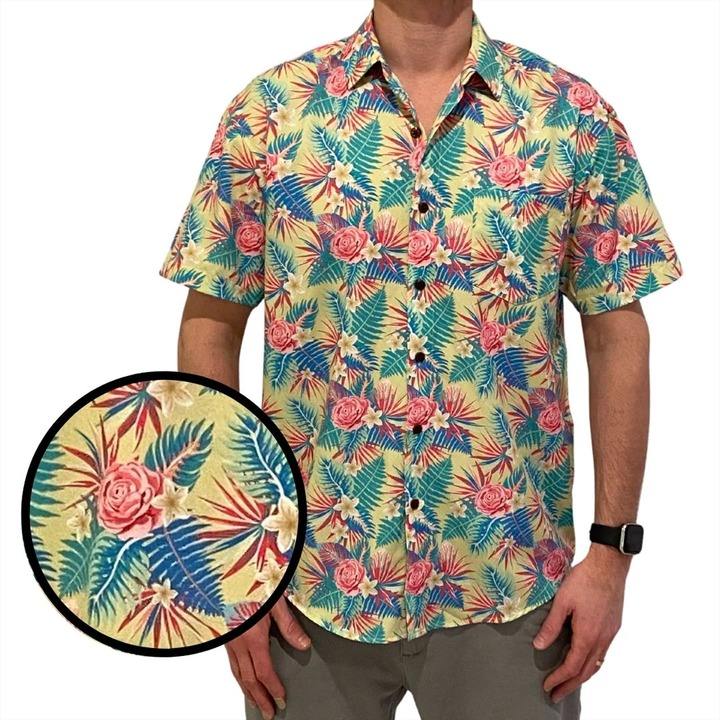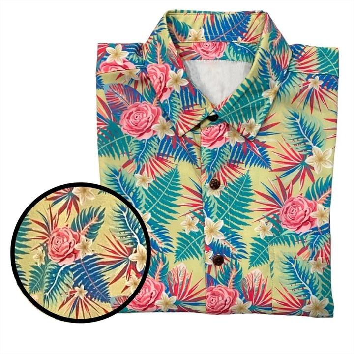 เสื้อเชิ้ตฮาวายลำลองพิมพ์ลายป๊อปลินแขนสั้นสำหรับผู้ชาย ดีไซน์ฟรี