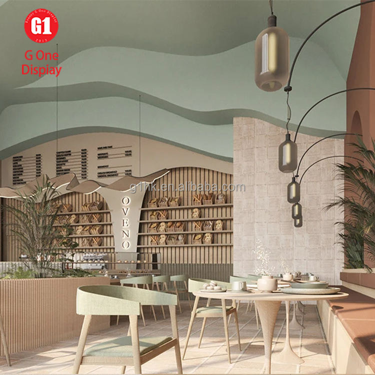 ออกแบบฟรี เฟอร์นิเจอร์ร้านเบเกอรี่ทันสมัย ชั้นวางโชว์เบเกอรี่แสนอบอุ่น เคาน์เตอร์คาเฟ่ไม้ เฟอร์นิเจอร์ตกแต่งแบบกำหนดเอง