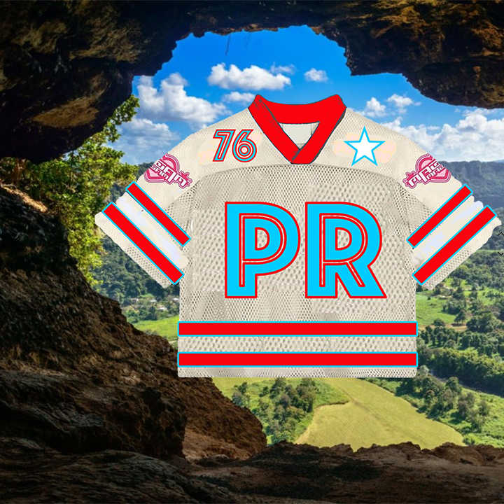 เสื้อเจอร์ซีย์ครอปฟุตบอลอเมริกัน/ฮอกกี้ สไตล์วินเทจ สตรีทแวร์ ผ้าตาข่าย ระบายอากาศดี ออกแบบฟรี ของที่ระลึกการท่องเที่ยวเปอร์โตริโก