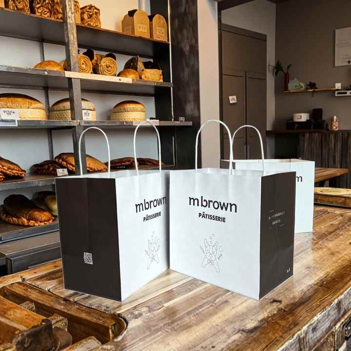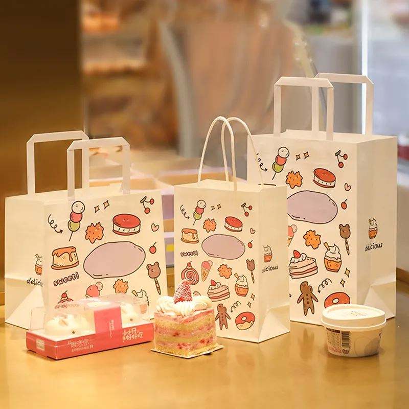 ถุงกระดาษใส่อาหารแบบมีหูหิ้ว สำหรับร้านอาหาร กาแฟ อาหารจานด่วน ออกแบบฟรี