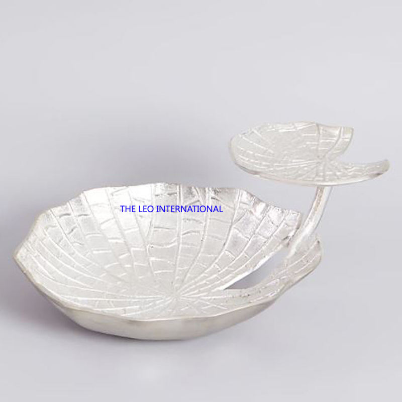 Free Hammered Decorative Bowl Golden Plated Leaf Shape Design Three Compartment Bowl Stainless Steel Brass Metal Unique
