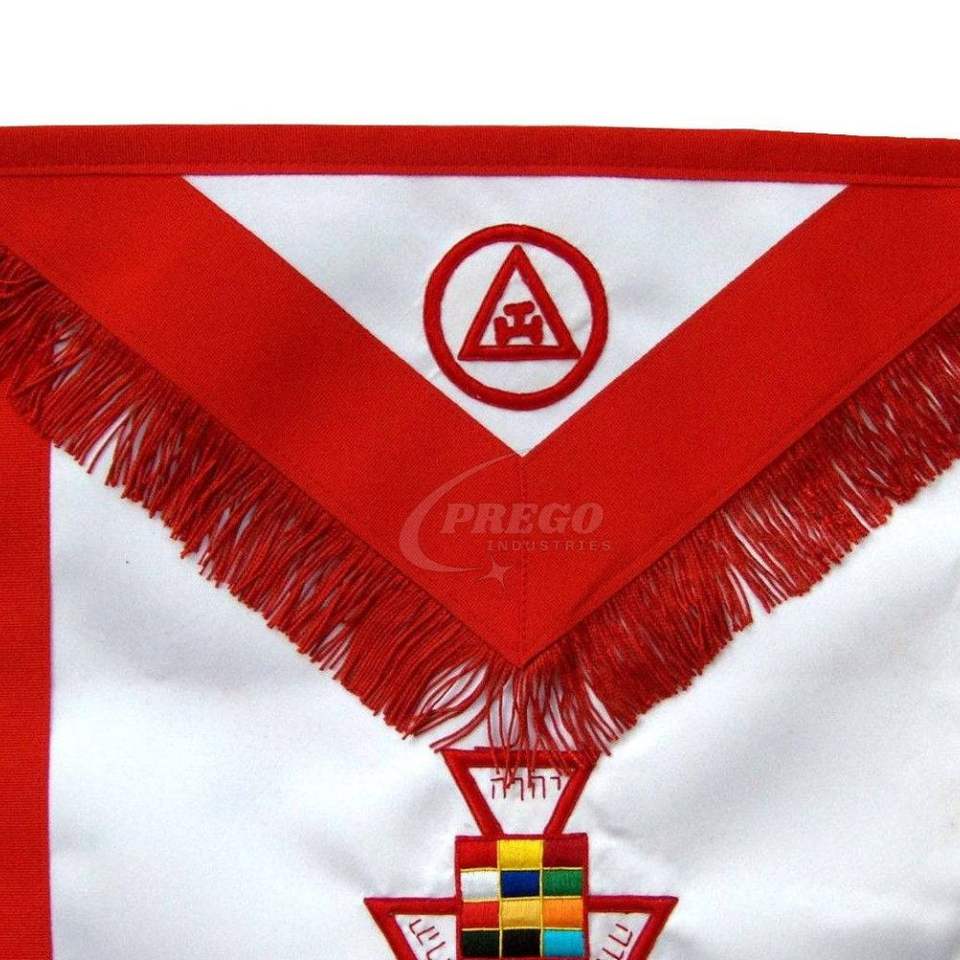 ผ้ากันเปื้อนพิธีกรรมฟรีเมสัน ตำแหน่งพระสูตรเมสันระดับสูง รอยัลอาร์ช แชปเตอร์ - ผ้ากันเปื้อนปักมือสีแดง