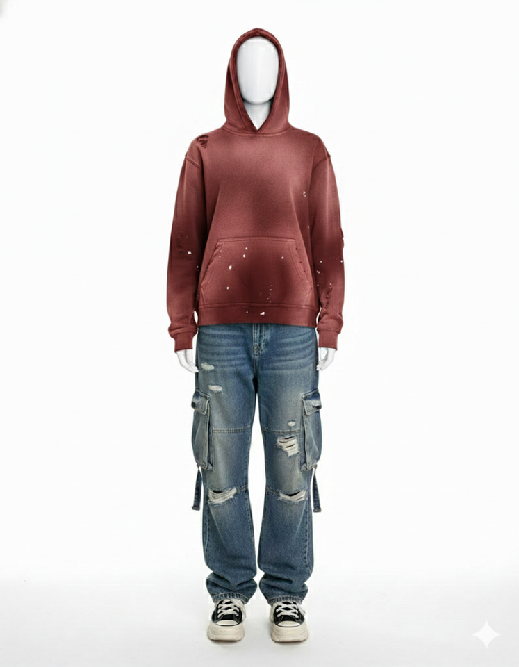 เสื้อฮู้ดดี้โอเวอร์ไซส์สไตล์สตรีทแวร์แบบฟอกสี พร้อมกระเป๋าจิงโจ้ ฟรีแบบจำลอง