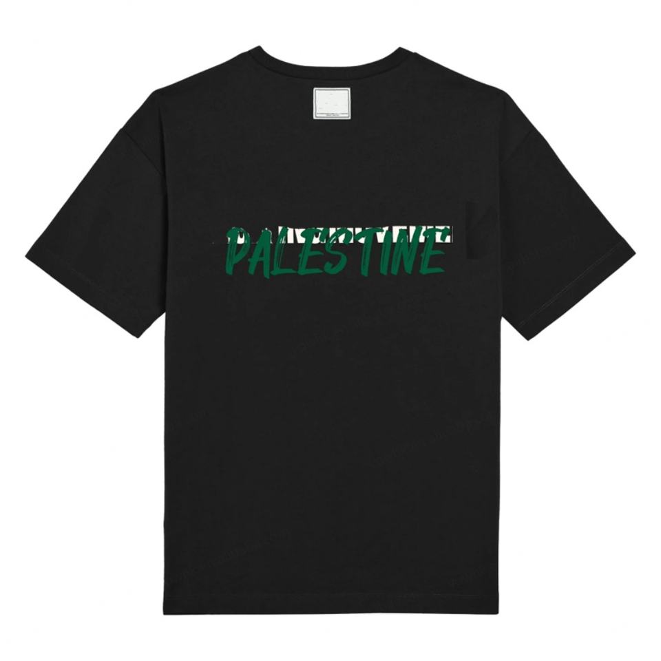 เสื้อยืดพรีเมียมผู้ชายลายพิมพ์กราฟิกขนาดใหญ่ คอตตอนเนื้อหนา คอกลม แบรนด์ Free Palestine สำหรับผู้ชาย