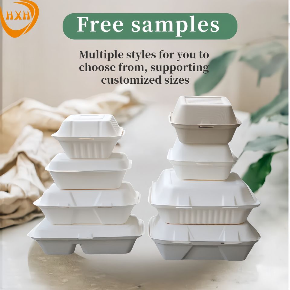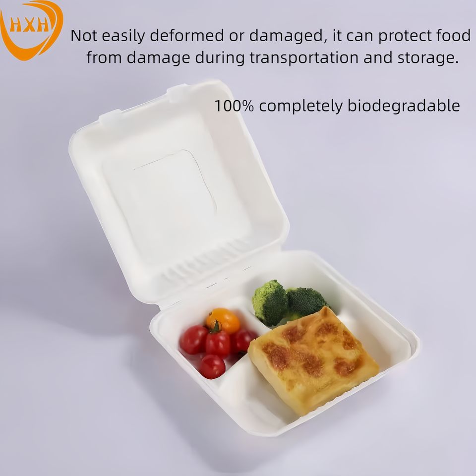 กล่องอาหารแบบใช้แล้วทิ้ง 3 ช่อง ทำจากชานอ้อย เป็นมิตรกับสิ่งแวดล้อม สำหรับอาหารนำกลับ/อาหารกลางวัน/เบนโตะ ได้รับการรับรองมาตรฐาน ISO ตัวอย่างฟรี