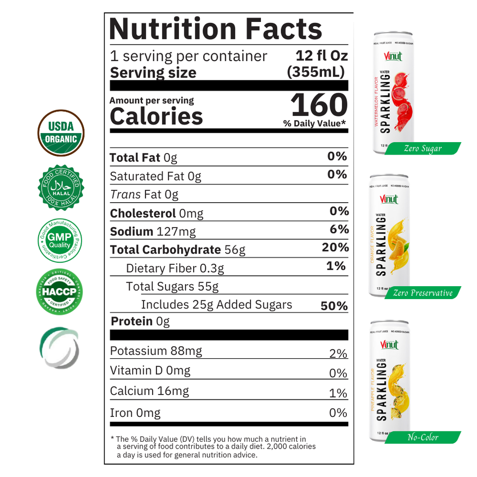 Free Sample 355ml Orange Fruit Juice Sparkling Water Drink Wholesale Soft Drink From Vietnam Private Label OEM