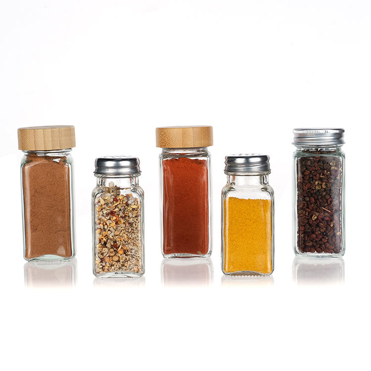 ขวดแก้วใส่เกลือพริกไทยพลาสติกขนาด4ออนซ์6ออนซ์พร้อมฝาปิดสำหรับวางเครื่องเทศ